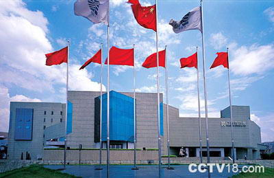 该馆采光设计是以人工照明与天然采光相结合。照明采用了进口的滤紫外线白炽灯,三基色荧光灯等高显色性的展览专用灯具为主,以保证展品照明质量的要求。展厅的天花上留有纵横的小灯槽,作为照明灯的轨道位置,以适应展览厅因不同展品布置的变化。画库采用全年恒温恒湿,控制温度为24±10C,相对温度55±5%。