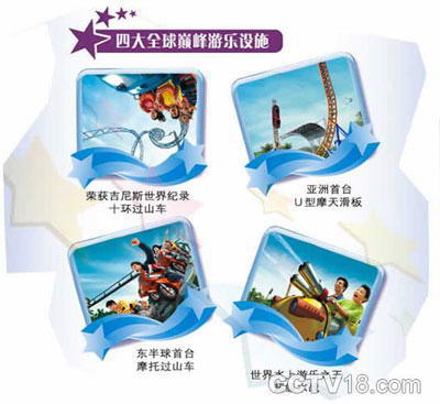 长隆欢乐世界是长隆集团耗资逾10亿打造的新一代顶级游乐园,首期占地面积1000亩,仅游乐设施近70套,是目前国内设备最先进、科技含量最高、游乐设备最多的超级游乐园,日接待游客能力达5万人。
