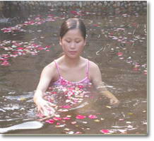 从古至今,花药浴一直是行之有效的强身健体、护肤美容的重要方法之一,是当今的新型、时尚、前卫的健康方式,对久别自然的亚健康状况的城市人群来说,远离喧嚣的都市,泡一泡天然花草药浴,品尝郊区农家菜肴,欣赏山水风光,追求一种久违的自然、清醇和朴实是何等美好之事。瑶池花雨风景秀丽、群山环抱、绿树成荫;花药浴区 内各类花药瑶池依山而建,高低错落,回廊水榭,沟连相 通,16个花药浴池错落有致,功效各一,尤为称道的是10个露天药蒸浴,更是东南亚首家,您在花药中蒸浴、沐浴,药香扑鼻,心肺神舒,一边独享康体保健、肌肤美容之快 感,一边享受山风之轻拂,眺望大自然之无敌美景,不是 神仙,胜似神仙。加以本度假村全体员工以您为尊,以您 为荣,亲情、超前、细微、善解人意的服务,使您身心舒 泰,留驻青春,留驻美貌,留下美好的回忆。