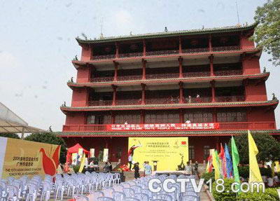 镇海楼坐落在越秀山小蟠龙冈上。该楼又名“望海楼”,因当时珠海河道甚宽,故将“望江”变为“望楼”。又因楼高5层,故又俗称“五层楼”。楼前碑廊有历代碑刻,右侧陈列有12门古炮。