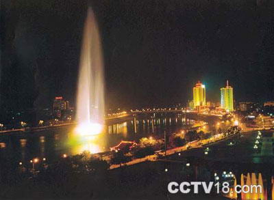 亚洲第一高喷泉每晚19:30分向游客免费开放,每晚喷30分钟,新丰江两岸绿水长廊,烟桥灯影将成为一道独具特色的风景线。