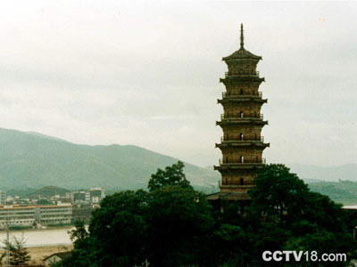 龟峰塔位于源城的龟蜂山,面临东江与新丰江交汇之处,因其建在一个酷似大龟形的独立山头上而故名。龟峰塔创建于南宋绍兴二年(公元1132年),属佛塔,外观七层,内边十四层,一明一暗,是广东省仅有绝对年份可考的南宋早期砖塔。1962年被列为广东省第一批重点文物保护单位。传说神仙因同情终年为水所害的河源人,萌发了恻隐之心,选定在新丰江与东江汇合外的下游边,放一只大水龟,让它变成一个山包,然后建一座塔以镇水妖。故此山称之为龟峰山,塔名曰龟峰塔。