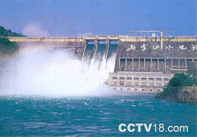大坝雄姿:新丰江水电厂拦河大坝为混凝土结构,由19个中距为18米的大头墩及两端重力坝组成。坝顶高124米,坝顶宽5米,长度440米,是世界上第一座经受六级地震考验的超百米高混凝土大坝。坝体下游侧塑有“新丰江水电站”六个大字,是当时省委书记陶铸的亲笔手迹。如果不是亲临其境,人们很难想象这么一座百米大坝,背后是一个“山中海洋”,而脚下却是一个高楼林立、人影绰约的中等城市。