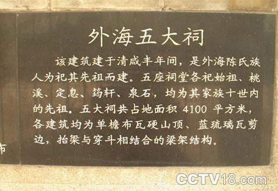从前外海的祠堂,星罗棋布,最宏伟的是“外海镇陈氏五大祠”,五大祠位于外海东部的赤泥山下,因而乡下人多称其为“东头祠堂”。