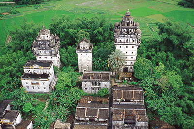 民国七年(公元1918年),村民集资兴建在村后中部兴建了锦江楼。锦江楼是典型的众楼,楼高5层17.36米,钢筋混凝土结构,顶层为悬挑出来的平台,女儿墙外有中西融合的灰塑图案,正中为一悬山顶的楼屋,墙体密布枪眼,窗口狭小,置有铁门、窗。建筑形体简洁,朴实无华,是防御性显著的碉楼。