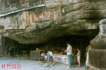 桂竹园位于榕城区仙桥镇紫峰山南,池揭公路之北,紫峰苍郁、绿荫掩映,清幽别致。拾级半山,东侧为“仙湖古寺”,西边有室,一巨石天然成顶,中可容百余人,即桂竹园岩(传说迷离的“仙脚迹”便在此)。由此岩北行百余米,可见丁日昌墓,墓西为水流河水库,三面屏三,清可鉴人。水库半山有莲花亭,沿亭上向天螺峰,即到己三墓地(己三姓陈,名首,号光烈,元代清官,死与任上,后人以其袍靴葬于此地)。距水流河北千米便是龙珠马寺,寺内之龙泉洞泉水长流不息,曲饶岩前,山后松茂竹修,风传雅韵,令游人驻足忘返。