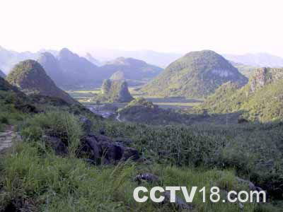 坐车绕道从英德市西南部的九龙镇,明迳镇,岩背镇再到白湾,这是全省著名的“英西峰林走廊”旅游线路。绵延20多公里二级水泥路穿梭于峰林,峰丛之间,数百多座呈线性排列的石炭岩山峰。错落有致,峭然顾盼,偶有水塘或小溪倒映峭峰,近似桂林山水的特色,位于白湾镇不远处的岩背阳岩洞,其旅游价值并不亚于有名的英德宝晶宫。