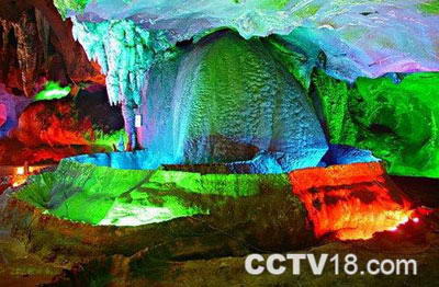 宝晶宫位于英德市区南郊7公里的燕子岩山中,是一座四层相叠呈金字塔形的溶洞(目前只开发三层),游程长达1.5公里。在洞内曾发现一批距今约十万年的打制石器。  洞内总面积达2万多平方米,共有7个厅洞,其间有200多米长的石林长廊和迷宫似的通道,各种钟乳石景和洞中河湖形成了将近100个景点。游人在洞内的游程大约有1.5公里,从最低处到最上层高105米,有700多级台阶。洞中比较著名的景点有“宝宫琼蕾”、“龙王出巡”、“天池飞瀑”、“一洞天”、“雷峰塔”、“玉树寒林”等美景,还有一片亿万年前由彩色石粉沉积而成的灰华坡,面积达4000多平方米,规模非常罕见。最具特色的是一处“暖洞”,整个洞内的暖空气上升到洞顶而形成一块气温明显高出其他地方的区域。  交通:从英德火车站乘公共汽车或旅游中巴,半小时即到。