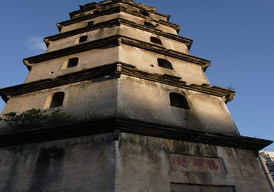 腾辉塔建于乾隆二年(1737年),景名“腾辉倒影”,是原鸥汀八景之一。塔的平面为六角形,共七层,高20.3米,这座楼阁式古塔结构严谨,气势恢宏,其塔上加塔的建筑结构为全国罕见。1988年被列为汕头市文物保护单位。
