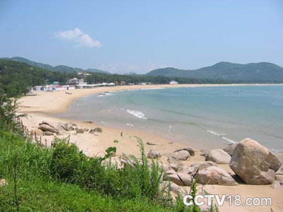 青澳湾位于南澳岛东部,海湾似新月,海面如平湖,金黄柔软的沙滩绵延2400多米,坡度平缓,沙质洁白,海水清净无污染,是广东省两个A级沐浴海滩之一。93年被广东省定为省级旅游度假区。