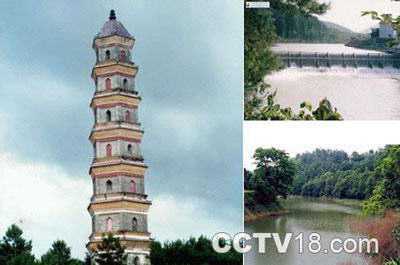 雁塔又名文峰塔,建在县城东郊的双角村背老围山上。据《长宁县志》载,清乾隆四年(1739年),知县陈张翼倡议在建文峰塔以镇风水,自可造福。1986年由广州市文化局、县人民政府拨款重修,该塔塔身、塔心室的平面均呈六角形,为七级楼阁式砖塔,高33.2,底层直径7.6米,壁厚1.57米,内分13层,塔心室为六角直井式,楼梯原为穿壁绕平座式,盘旋而上登顶层,极目四望,令人心矿神怡。