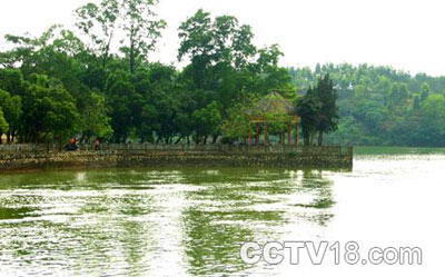 登上水库渠首青年亭,极目远望,水天一色,天水茫茫,素有“鹤湖烟雨”之称。昔日的山陵被水分割、包围,变成了无数的“洲岛”,形如落珠,气象万千。登亭路上,遍植松树、桉树及其他树木,四季常青。亭四周是密密的青松,郁郁葱葱,微风吹来,沙沙作响,如乐似诗。