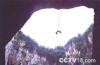 当地人将天坑称为“石围”,广东粤北人称天坑为“箩”,但“大石围”比粤北的“通天箩”要大30倍。