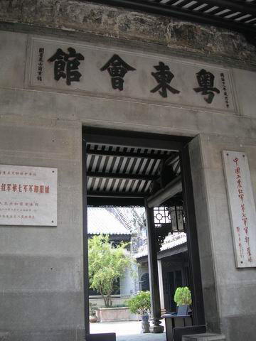粤东会馆,是一座砖木结构的古建筑,具有南方古建筑的艺术传统和风格。位于百色市解放步行街,整个建筑占地面积2331平方米,建筑面积2661平方米。会馆座西向东,以前、中、后三大殿宇为主轴,两侧配以相对称的四进厢房和庑(音:wu)廊,构成“日”字形封闭式独立建筑群。殿宇庑廊,布局严谨,庭院通道,铺设红色阶砖和长方形条石,殿堂廊下,全为是实木大圆柱或花岗岩方形石柱支撑。中间主体建筑三大殿宇的内山墙上现今还完整保存着十分精美的水墨壁画。可以说,整个建筑就是一件文化教育艺术精品。