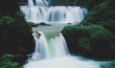 爱布瀑布群风景区位于靖西县城东南部16公里,交通便利,离国道仅有500米,上源为龙潭河及鹅泉两河汇流后成为靖西最大河流难滩河,是德天瀑布水源头。由于地势多变、地形落差大,滩多水急,在爱布一带沿河形成了许多大大小小的瀑布群,相距仅在600米,瀑布最高为42米,最宽为50米。