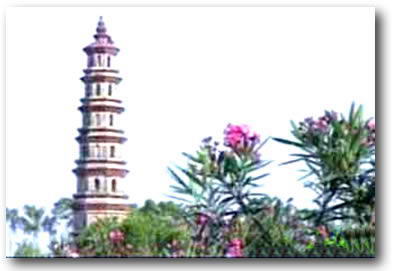 文昌塔位于合浦县城南约3公里处,始建于明朝万历年间,距今已有三百多年历史。塔为八角形,高约36米,塔座8.1米,内径2.6米。为7层叠涩密檐砖塔,其造型从底层向上逐层收窄,塔顶为一红胡芦。