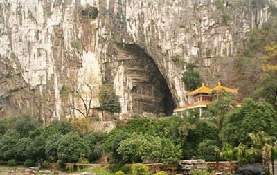 桂林南溪山公园位于桂林城南,北距火车站约1公里。南溪山两峰对峙,高突险峻,犹如两扇白色屏风,南溪河从山北穿公园潺流过。南溪山的最早开发者是唐实历间的杜管观察使李渤,他酷爱此山的碧水幽林,今山洞中尚存其《留别南溪》诗的石刻。公园有白龙洞、刘仙岩等多个岩洞,两峰间有龙脊亭,为登高观赏城南北风光的佳处。
