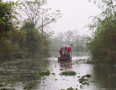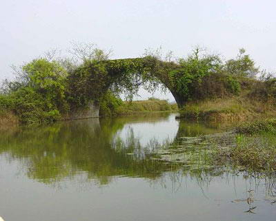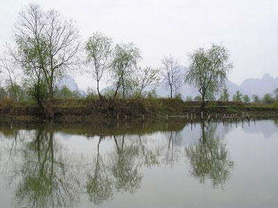 踏上八桂大地的东北端,顺着闻名中外的兴安灵渠古运河南下,过了灵川,沿桂林市郊直奔临桂县会仙镇,就来到了古桂柳运河的中段———睦洞湖。古桂柳运河在此打了一个旋儿,一部分通向阳朔西北的雁山,史称东西渠。特别是西渠源远流长,凿通于公元692年即唐长寿元年,已畅流一千三百余年。古桂柳运河功莫大焉,“上通漓灌下通柳”,这一仅三十里的航道将柳江与漓江连在了一起,是世世代代北国通往南疆的咽喉要道,由此,中原与岭南沟通十分方便。航、排、灌、商、农、副,百业勃兴。游人若要特意去明代著名旅行家徐霞客游观的分水塘分水闸遗址,去吟诵一下这位行吟诗人在狮子岩上盛赞桂柳河的名句:“狮子岩前水长流,南临山景逍遥游;龙王庙内钟鼓响,虎仔桥上望客舟”,自会别有一番豪情胜慨涌在心头。