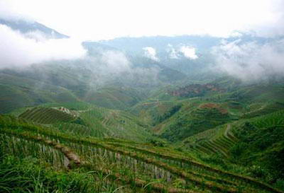 龙脊气候湿润温和,由于海拔较高,形成高山、深谷的大落差使得梯田周边远有高山云雾,近有河谷急流的景观,形成世界一绝的自然的生态环境,这里有纯天然的绿色食品“龙脊四宝”龙脊水酒、龙脊辣椒、龙脊香糯、龙脊茶。您若是碰上细雨蒙蒙的天气来观赏雨雾中的龙脊梯田那是最赋有诗情画意的事了,您仿佛一下就走进了中国古代的水墨山水国画中,又仿佛置身于一个神秘的童话世界,那雨雾中约隐约现的龙脊梯田可以层现出梦幻般的轮廓,梯田的线条在雨雾中更显得柔美,像一个刚沐浴完的少女披散着长发在柔美的向您倾诉。龙脊的云雾给梯田蒙上了一层神秘的面纱就像“蒙娜丽莎”的微笑等待着您去发掘,龙脊的雨雾随风而动变幻出神奇的图案,给您像雨像雾又像风的感觉,那洁白的云雾、银亮的山泉,和那在雨雾中沉睡的村寨则被空灵成仙宫了,龙脊灵气吐纳的山光水色可以让您沉醉的迷恋。