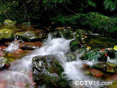 步入槽林深处,空气清幽。峡回谷转,颇有“山重水复疑无路,柳暗花明又一村”之感。槽中清泉涌溢,常年碧溪水流。其中的“天槽飞瀑”、“霞映珠帘”、“别具洞天”、“屏画凌空”、“奇石隐溪”、“七彩清溪石上流,水花欢跳乐悠悠,因时变幻多奇景,丽色堪超九寨沟”。