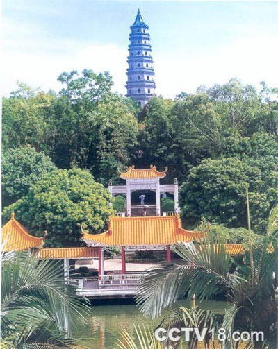 青秀山顶上矗立的宝塔叫龙象塔,俗称青山塔,它是青秀山的象征,始建于明万历年间,共有九层,后被雷电击塌了两层,抗日战争期间政府认为此塔是日机轰炸南宁的“航标”,就把它炸掉了。到八十年代中期才重新修建。它还是保留了明代建筑风格,青砖碧瓦,八角叠檐,塔有九层,高60米,塔基直径12米,有207级旋梯,为广西最高最大的塔。登上塔顶,可眺望远近一二十里的风光,南宁城景色更是一览无遗。