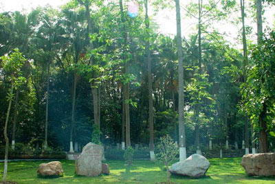 广西药用植物园是一座融游览、科研、教学和生产于一体的综合性园地,坐落在距南宁市区8公里的东郊山峦,占地200多万平方米,是我国及东南亚地区最大的药用植物园之一。园内林木苍翠,藤蔓纵横,加上棚架点缀其间,小桥流水更添雅趣。这里栽培药用植物2130多种,是李时珍《本草纲目》所记载的两倍,被人们誉为立体的“本草纲目”。