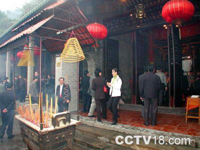 二楼供奉着关帝神像,左侧有一池清水,内有一头万年长寿石龟,大龟背上驮着一大型石刻"总府题名碑"。游客到此拿钱币"投石龟求好运"。龟池后山壁上有一大型浮雕"五龙喷水壁"。