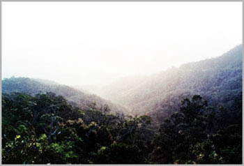 斧头山海拔1200多米,漫山的林海中,千树万木各具风姿,有的枝繁叶茂,冠荫覆盖;有的盘根而生,硕大雍容;有躯干挺拔,蔚然毓秀,真是举目皆景,千姿百态,目不暇接。这是目前我国保护得较为完整的热带原始森林。在这里,树下有树,林内有林,鳞次栉比,层次分明,完整的一派天然林景观。林海里,昨蝉狂躁,百鸟啁啾,鹿鸣猿啼;微风中,树叶絮语,藤花摇叶,真是生机勃勃,春意盎然。