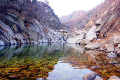 龙潭峡自然风景区位于抚宁县大新寨镇东4公里,置身龙潭峡,若缘溪探幽,可听溪流叮咚,望巨石悬空,闻百鸟啼鸣,有山若锥,有石若仙,路尽谷深,龙潭毕现,百米飞瀑从天而降,夏垂白练,珠飞玉溅,冬挂悬冰,晶莹灿烂。峡谷东面的黄崖底处,有天泉朝阳洞“三清观”古刹。若登山赏景,可到舍身崖探险,峭壁上有大定年间古人刻的五福灵气活现的众僧壁画。望海红刹寺、铁瓦无梁殿遗址两座,距今已有800多年历史。顶西有坚实的佛塔和参禅,仙人对弈冬夏棋盘,顶东有奇特的双眼龙泉。