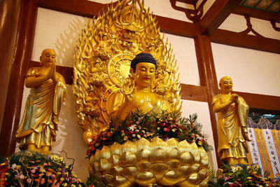 桥北是雄伟的重胜寺,始建年代不详,其坐北朝南,依次为山门、天王殿、释迦殿、配殿及僧房等建筑。