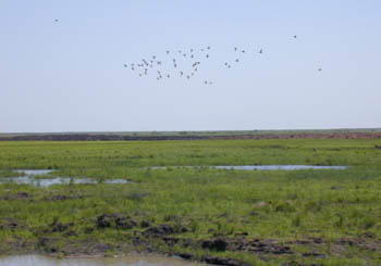 由于它的地理条件决定了大量季候鸟类春来秋去,来此生息繁衍。由于近年三江平原的开发,排灌泻洪,开荒垦植,使周围环境发生,了巨大变化,迫使一些鸟类再迁徒北上。据考察:一些鸟类由于不适应北方的环境条件,又成群飞归这里,再度寻求在此生息。