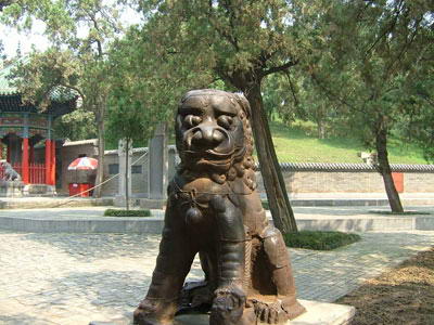 关林因厚葬关羽首极而名闻天下。明万历二十年(1592)年,在汉代关庙的原址上,扩建成占地180余亩,四进院落、150余间殿宇庙会,千余株翠柏的关林庙。兀立于广场上的“千秋鉴”为旧时“灯影钟鼓话兴亡”之所在;分立于大门两侧的明代石狮、赳赳而踞,具有凛然不可侵犯的威严,极富封建意味的大门镶嵌着81颗金色门钉,体现了关林的崇高地位和关羽的身后荣耀;立于仪门左右重达3000余斤的铁狮,是明代善男信女敬奉关公的遗物,虽历经400余载风风雨雨,依然肃穆含威;仪门“威扬六合”匾为慈禧太后传笔,端庄厚重,弥足珍贵;连接仪门和拜殿的石狮通道为海内外关庙所独有,通柱顶雕石狮104尊,百狮百变,圆润生动,毫无石刻的生硬之感,代表了乾隆时期中原石刻艺术的最高成就。