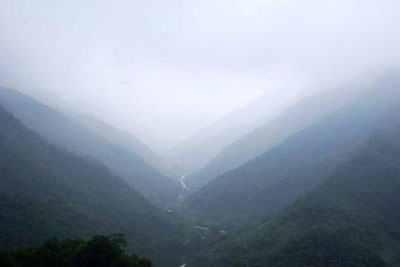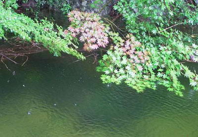 百米大瀑,如通天巨泉,日夜狂泻;涓涓溪流,似龙吟细细,四季低喧;金蟾宫内,深潭碧池,蛙鸣蝉噪,述说久远神话;红河寺下,古木苍苔,记叙故去的繁荣。天有常度,地有常形,岂止四渎之流,万泉之溪,莫不如此。源自古木寸草,汇于深潭碧池,依山趋势,奔走不息,从悬崖上跳跃,在岩石间磨练,竟也洗出一条光洁如镜的幽谷。