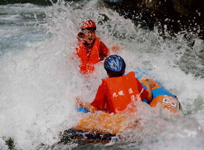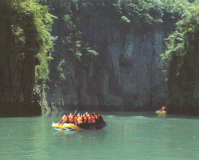 水路的漂流更是极具魅力,全长13.2公里的漂流河道分上下两段,上段6.4公里的惊险刺激漂流,急滩上飞舟,激情四射,碧水迂回,两岸绝壁林立,人在水中漂,忙里偷闲观赏岩棺群。下段6.8公里为静水里的休闲漂流,水深70—80米,碧波悠悠,两岸绝壁相对耸立,共有48座山峰,每座山峰姿态各异,植被达100多中以上,坐在12座的环保双浮筒漂流艇上,沐浴着清新自然的山风,可沿途观赏笔峰石、望夫石、候王寨、百宵图、仙女沐浴等奇世美景,如在仙镜;可领略原始森林古树、香草、长藤、奇兽的神韵;可体味九畹溪电站、九畹溪大桥等现代宏伟的气势;可探索800米青钟地缝的幽静惊险。宏伟的三峡大坝、雄浑的崆岭险滩、威武的将军岩,将一解峡江山水的雄奇与秀美;壁立的问天简、沧桑的巨鱼坊、神秘的古悬棺,一展巴楚文化的神韵。