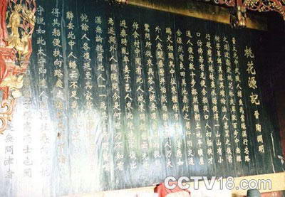 明诗人李得阳题。碑为时光所蚀,残高270厘米,宽130厘米,厚20厘米。碑文行书,无年月。碑文缺字且有几字模糊难辨认。碑置於桃花源源碑廊。