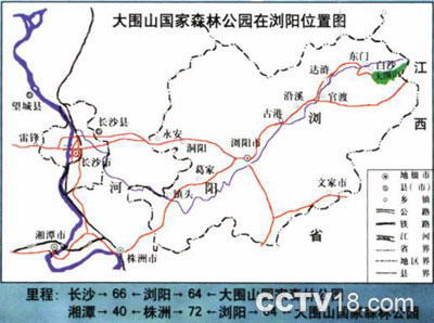 大围山国家森林公园位于湖南省浏阳市东北部,距省会长沙118公里。它以森林茂盛,资源丰富,风景秀丽,气候宜人,被称为“湘东绿色明珠”。1992年经林业部批准为国家森林公园。大围山国家森林公园面7万余亩,境内群山环抱,立峻挺拔,土地肥沃,雨量充沛,植被丰富,种类繁多。原始次生林和人工林浑然一体,形成一片绿色的海洋。植物种类有23个群系、3000多种,列入国家一、二类保护树种有17种,已发现野生动物60余种,列入国家一、二类保护珍稀动物达14种;森林中繁殖的彩蝶打1200多种,堪称“天然动植物博物馆”。