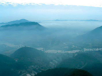 浏阳城西约15公里神岭一带,三峰鼎峙,葱青入郭,中间有一大湖,曰巨湖,其山也叫巨湖山。巨湖烟雨乃指春夏之交,清晨山顶石烟缭绕,雾入云霄,俨若雨下,变幻万千,周忠信词曰:“烟雨暗层峦,西望茫茫,树墟城郭雾中看。气涌潮心肤寸引,酿就轻寒。几缕向空翻,数点飘残,潇湘彭蠡合奇现。疑是南宫传笔意,水墨溪山。”