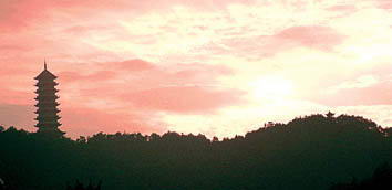 高阁对琴堂,淡抹烟光,年来风物换沧桑,翘首飞鸿何处落,一片斜阳。