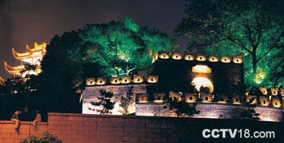 作为楚汉名城,长沙2000多年前就有宽厚的夯土城垣。明初悉改石基砖砌,外绕护城河。辛亥革命后拆城墙修环城公路,仅地势最高的天心阁一段作为胜迹保留。时人有联曰:“阁上九霄迎日月,城留一角看江山”。这段古城墙现长387.8米,高13.4米,顶面宽6.1米。分内外两城,外城又筑南北两月城,内有藏兵洞、炮洞等,并留清代铁炮4门。城墙上尚存的斑斑弹痕,向人们诉说着城墙下的一段悲壮岁月:1852年9月10日,太平军抵长沙南门外。西王萧朝贵身先士卒,跃马挥剑,在前沿指挥攻城,不幸于9月12日中炮牺牲。以此为背景,《太平军魂》群像雕塑1993年10月在天心阁古城墙下揭幕,向世界展示了一曲农民革命战争的悲壮颂歌。