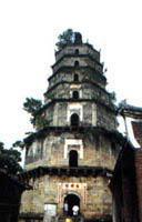 珠晖塔为雁城三塔之一。位于茶山坳镇藕塘村,雄踞江东岸之拜亭山上。为清代安徽巡抚衡阳人王之春主持兴建,耗白银6万两,费时13载,于光绪丁酉(1897)年建成。