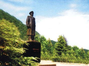 罗帅铜像座落于杨山北坡,占地180余亩。南依青山,翠绿欲滴,北傍洣水,舟楫竟帆。主要建筑有牌楼、广场、罗帅铜像和展室。牌楼插拔、气宇轩昂。广场全由南岳山麻石铺砌,宽阔旷达,两旁皆有花卉点缀,优雅沁心。罗帅铜像屹立广场之正后方,面东偏北,似凝眸故乡,情丝绵绵;如挥师沙场,威严赫赫。底座由江泽民主席题字:“罗荣桓元帅铜像”。