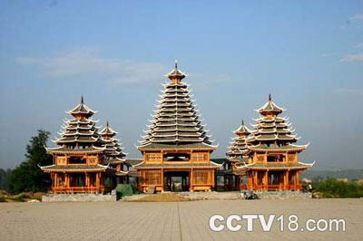 鼓楼是侗家的标志性建筑,一般修在寨头寨尾,也有修在寨中的。它是侗族人集事议事和娱乐的主要场所。鼓楼里有一个很大的火塘供人取暖,楼上置一面大鼓打鼓聚众。鼓楼前有一小坪,叫讲款坪,是旧时寨民们讲款议款(相似于村规民约)的处所。还有一个大的芦笙坪,那是唱歌跳舞赛芦笙的好地方。芷江鼓楼群修建于2005年,在舞水边的民族文化广场里,是规模最大、最具特色的侗乡鼓楼群。