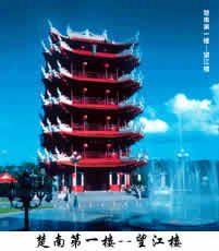 望江楼乃靖州标志性建筑,屹立天渠水与异溪交汇处,纳黄鹤、岳阳诸楼之雅趣,汇五溪、西楚文明之精髓,取中国古建之要旨,占鸣凤展翅之祥地,得玉龙抬头之灵机,聚靖州人文风韵于一楼。扼异溪,枕渠水,巍峨挺拔,大气磅礴,实属得山得水得时得人之壮观。