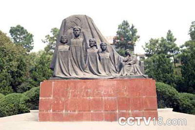 纪念馆前有宽阔的广场,在广场中心的翠柏繁花之中,立有纪念碑,纪念碑底座正面镌有“蔡和森同志光辉一家”十一个大字,底座之上是以中国共产党党旗为背景,正面为蔡和森的一家的铜铸群塑像。