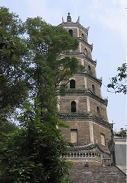 山寺晓钟景区故址在今昭陵西路,旧称东山。山顶之东山寺始建于南北朝时的梁代(502-557),后城内太平巷之太平寺迁东山,两寺合并,为宝庆府聚僧讲经之地,称为太平兴国东山讲寺,简称东山寺。