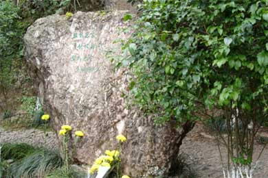 1911年11月,民国大总统黎元洪得知凤凰辛亥革命成功的消息后,欣然题写了“兴废周知”四个大字,镌刻在这里的山崖石壁上。沈老逝世后,经家乡人民的请求,沈夫人张兆和尊沈老遗愿,在沈老逝世四周年的祭日,即1992年5 月10日,将其骨灰归葬于此。没有凸起的坟土,没有华丽的装饰,没有人工雕刻的痕迹,一块自墓穴后凿取来的不规则的天然五色巨石肃然矗立,成为沈从文墓独特的标志。这块五色巨石高1.9米,重6吨多,前面集沈从文手迹,刻有沈老富有哲学内涵的语句:“照我思索,能理解‘我’;照我思索,可认识人 。”背面刻有沈从文姨妹、美国耶鲁大学教授张充和先生撰书,沈从文侄女婿、中央美术学院著名雕塑家刘焕素教授镌刻的挽联:不折不从,星斗其文;亦慈亦让,赤子其人。这四句话的最后一个字连起来“从文让人”又是沈老一生的真实写照。读其文、听其言、观其行,沈从文之所以能长久地受到人们的敬仰,得到众多文人骚客的祭拜,不能不引人深思。