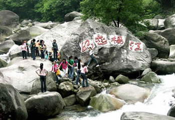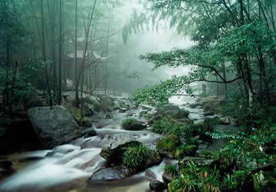 幽:舜皇山国家森林公园“山山耸奇峰,峰峰有幽谷,谷谷出清溪,溪溪有飞瀑。”这里的溪流如玉龙一样,奔腾在七七四十九条幽谷里,真是别有情趣。如龙潭江、娥皇溪、女英溪等十多条溪谷。龙潭江是一条十华里长的峡谷,两岸陡峭的崖壁直插去霄,窄处只有一线天,真乃“千帱百幛空来,琼楼玉宇珠门开”。两岸石壁上青翠欲滴的五针松,千姿百态的古木古藤,好似缀在云里雾间,养在天庭仙阁。谷底溪流潺潺,如珠玉走玉盘,陡峭处飞瀑泻玉,谷中常远遮雾锁,使人难识真面目,给十里龙潭幽谷增添了几多神韵。游人在此游览小憩,更能体验身在画中,游在仙境的悠然意境。园内森林植被茂密,溪谷纵横交错,水力资源丰富,使舜皇山区形成多处瀑布群。如大坳冲、大冲、龙潭江瀑布群,还有火岩、酒盅堑、蔸把堑、九堑等瀑布,大者犹如银河倾泻,落于九天,水声轰鸣,气势磅礴,小者如珠帘县垂、飘飘洒洒,别有情趣。