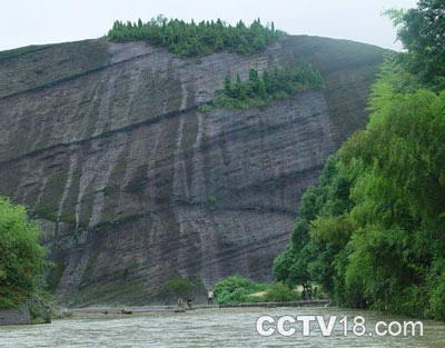 天门岩:竹筏过了蛟龙戏珠景点,远远望见一巨大无比的石壁挡立在前面,仿佛到了小河的尽头,这就是天门岩。河水擦着天门岩石壁,拐了一个90度急弯向左而去。