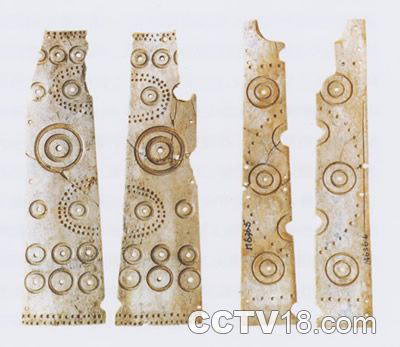 石器器形小巧、形制规整、磨制光滑,器形主要有锛、穿孔斧、七孔刀、三孔刀、锄、放论、砺石、石钺等数种。其中七孔石刀共发现2件,一件为残损后又经二次精磨加工,此七孔石刀与南京北阴阳营遗址出土的七孔石刀完全一致;是目前所见七孔石分布的最东缘。出土石钺2件,器行结构完全相同,钺共有四部分组成,分成骨质钺饰和柄端饰,木柄及环刃部完好,没有使用痕迹,通体抛光,制作精良,说明已不是一件简单的生产工具而应是一件礼器。附件骨质钺饰和柄饰上雕刻有精美的图案,更说明其礼仪性质。出土的2件石钺亦无使用痕迹,其装饰豪华考究,纯属礼器,再次明确将钺的年代提早了千余年,这对全面系统认识钺的产生与发展具有重要价值。