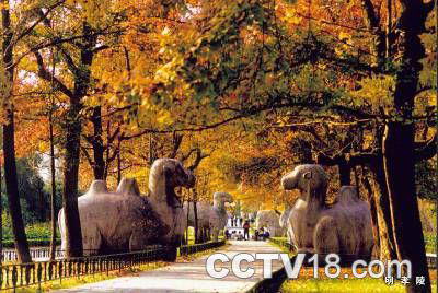 陵墓的神道从四方城开始。四方城是一座碑亭,位于卫桥与中山陵之间,其顶部已毁,仅存方形四壁,内有立于龟趺座上的石碑一块,碑高8.78米。碑文由朱棣亲撰,计2746字,详述明太祖的功德。碑座、碑额雕琢瑰丽。神道由此向西经外金水桥(今红桥),绕过梅花山再折向北,长约1800米。其中段为石象路,这段路上相向排列着12对石兽,分别是狮、骆驼、象和马等6种,每种两对,姿态是一对伏,一对立。后面是一对高大的华表,上雕云龙,气势不凡。折向北面的神道上分别列着4对身着盔甲或蟒袍的文臣武将,可惜有些已经损坏。石人石兽的体型都很巨大,是明代石刻的艺术珍品。